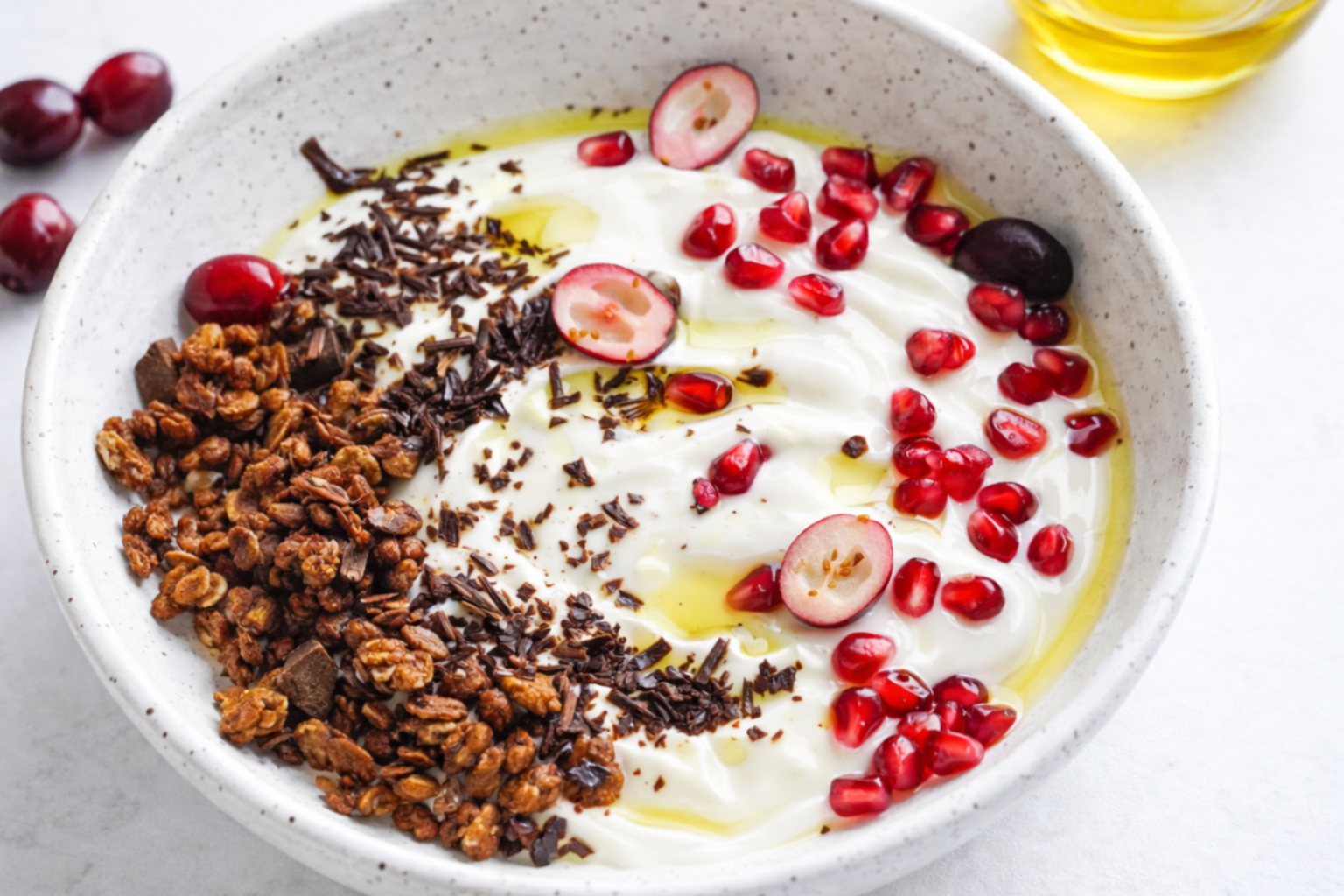 재료 : 요거트 (한 컵), 견과류 (한 줌), 베리류 (한 컵), 올리브오일 (한 스푼)