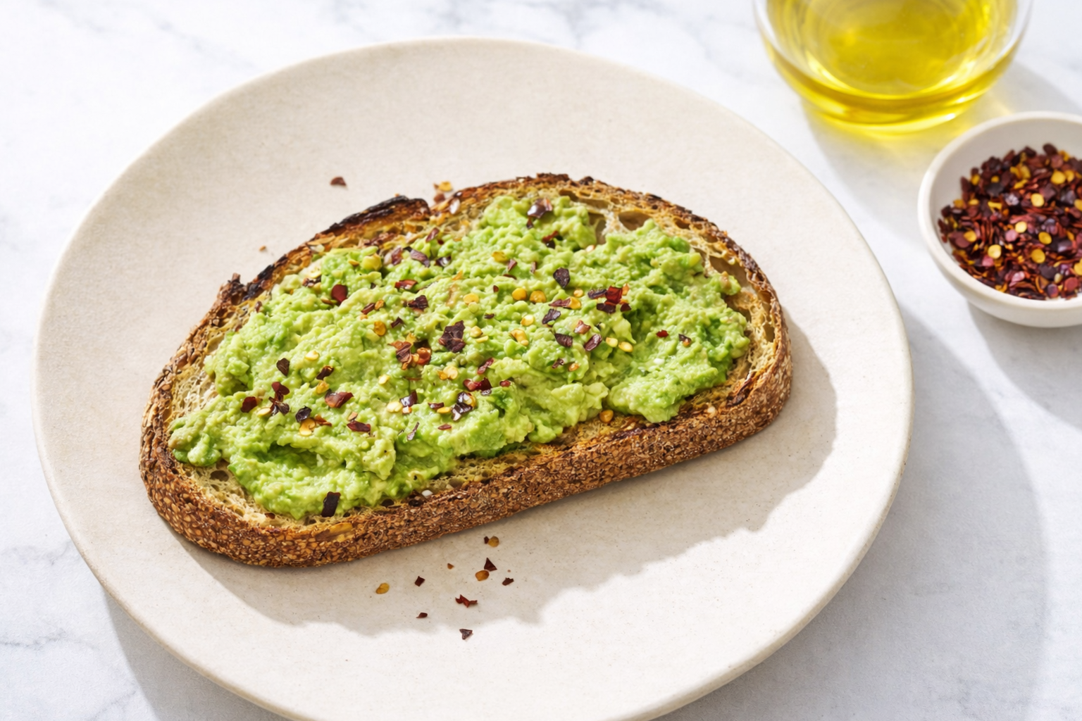 재료 : 통밀빵, 으깬 아보카도, 소금 (한 꼬집), 레몬즙 (한 포), 올리브오일 (한 스푼)